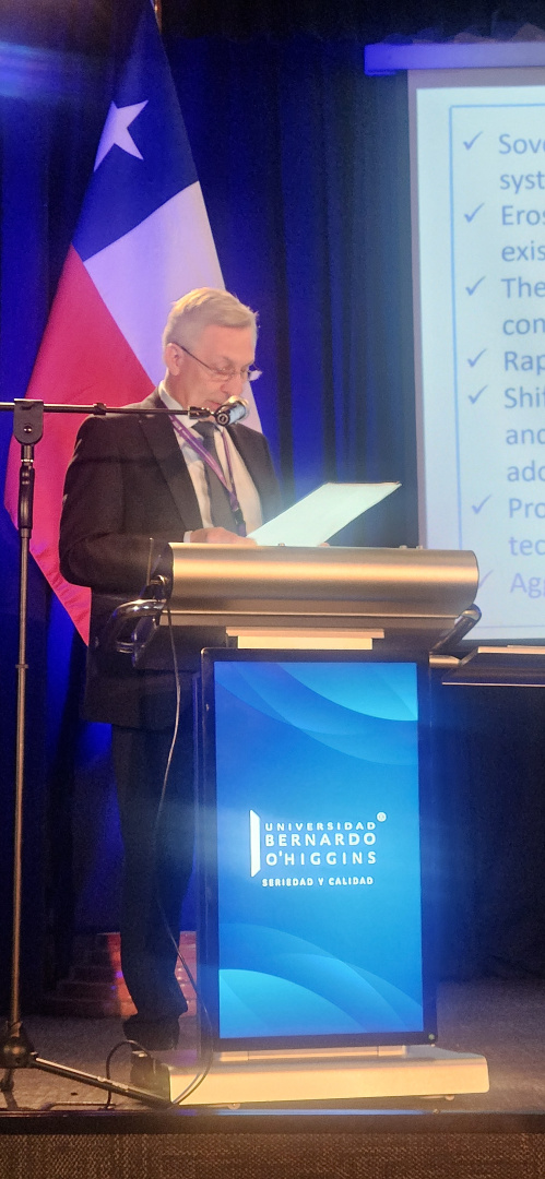 Ректор РГПУ им. А. И. Герцена Сергей Тарасов выступил на пленарном заседании Первого форума ректоров Латинской Америки и России, который проходит в Сантьяго (Чили). Темой заседания стали университеты в современном мире и укрепление сотрудничества для развития глобальной безопасности.