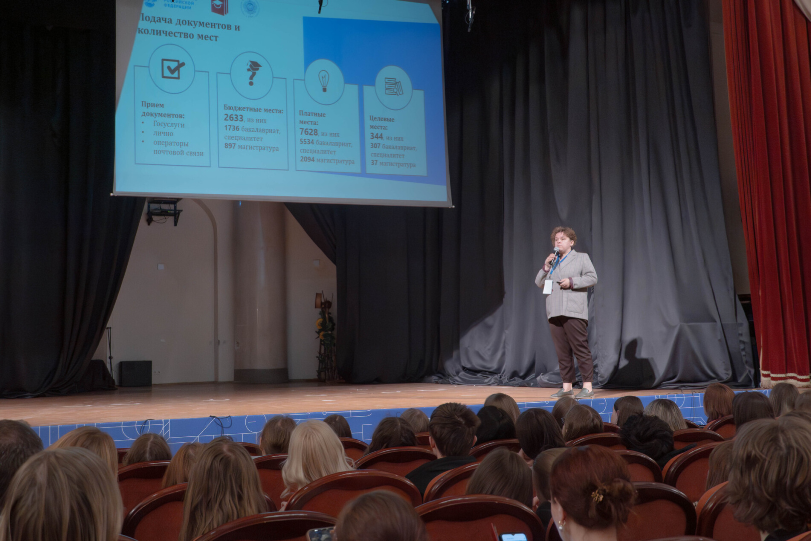 Ответственный секретарь приемной комиссии Ольга Кублицкая презентовала распределение мест в рамках приема–2026. Для будущих первокурсников бакалавриата и специалитета открыты 1,7 тыс. бюджетных, 5,5 тыс. платных и 307 целевых мест. Отдельная квота на 211 мест выделена для детей участников СВО и ветеранов боевых действий. Еще 320 мест (160 бюджетных и 160 платных) отведены для поступающих на программы СПО после 9 и 11 класса. Остальные места открыты на программы магистратуры. Общий старт приемной кампании назначен на 20 июня, основным каналом подачи документов являются Госуслуги.