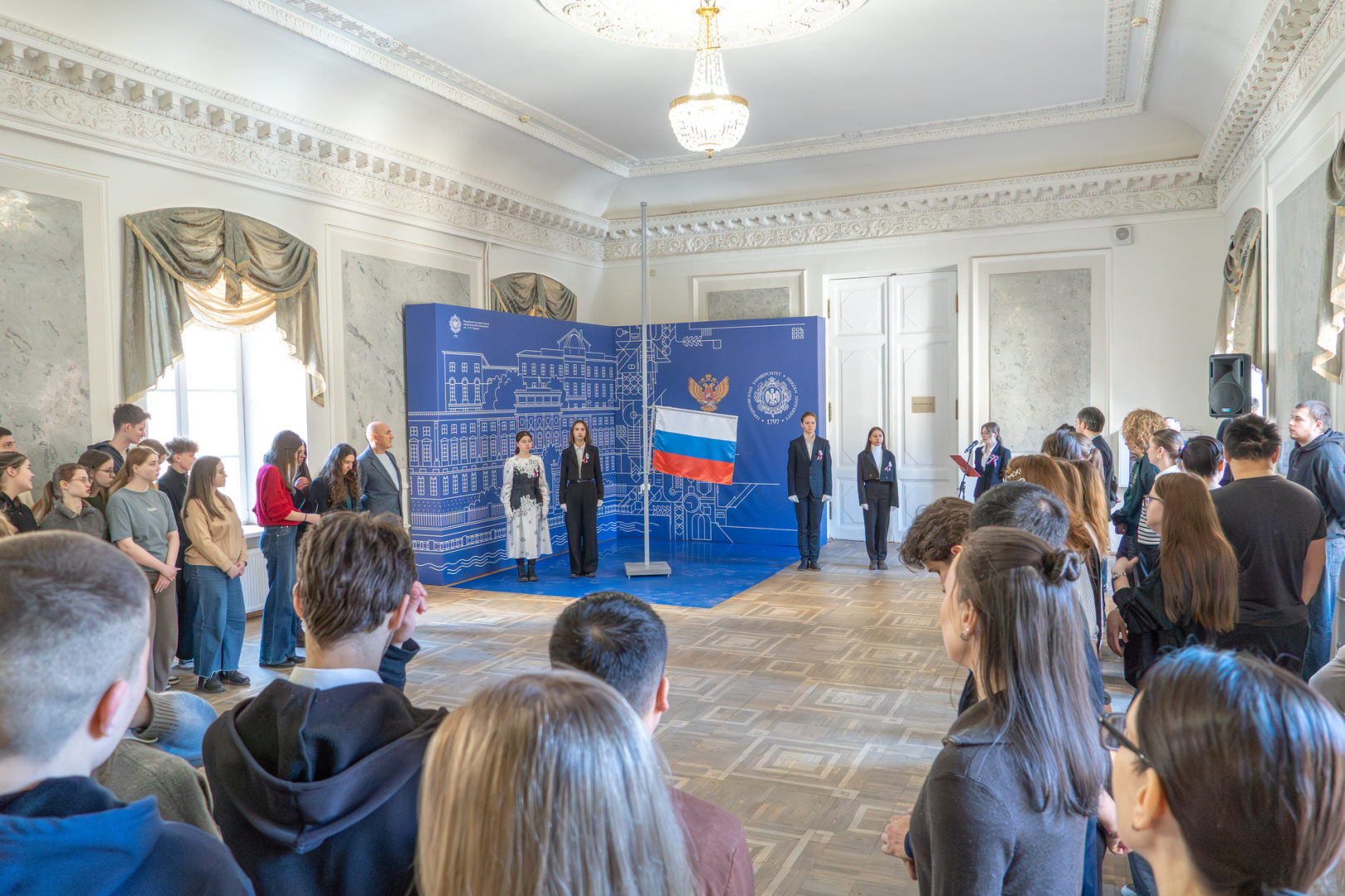 Почетным правом поднять флаг удостоены герценовцы, отличившиеся в учебе, спорте и общественной работе: студентка факультета математики, серебряный призер Всероссийских соревнованиях по джиу-джитсу, лауреат II степени Российской конференции учащихся «Будущие Ломоносовы», активный участник фестиваля «Победная весна» София Ковалева; студентка института физической культуры и спорта, неоднократный победитель и лучший вратарь чемпионата России по мини-футболу, лучший вратарь чемпионата Санкт-Петербурга в формате 7 на 7, активный волонтер, победитель командных соревнований школьников по медико-санитарной подготовке, ответственный донор, призер III Всероссийской научно-практической конференции «Донор=Жизнь» Ксения Кашутина; студентка факультета комплексной безопасности и военно-патриотического воспитания, участник Парада Победы 2025 года в Мурманске, стипендиат Губернатора Мурманской области по итогам 2023/2024 учебного года, абсолютный победитель молодежного научного форума «Шаг в будущее» в СЗФО по направлению «Социально-гуманитарные и экономические науки» Ульяна Пшеничникова; студентка факультета биологии, победитель конкурса ботанического рисунка, участник творческого объединения «Жажда», куратор академической группы первого курса, участник программы по подготовке эковолонтеров для участия в спасательных операциях по ликвидации последствий разливов нефти в береговой полосе Дарья Кондакова.