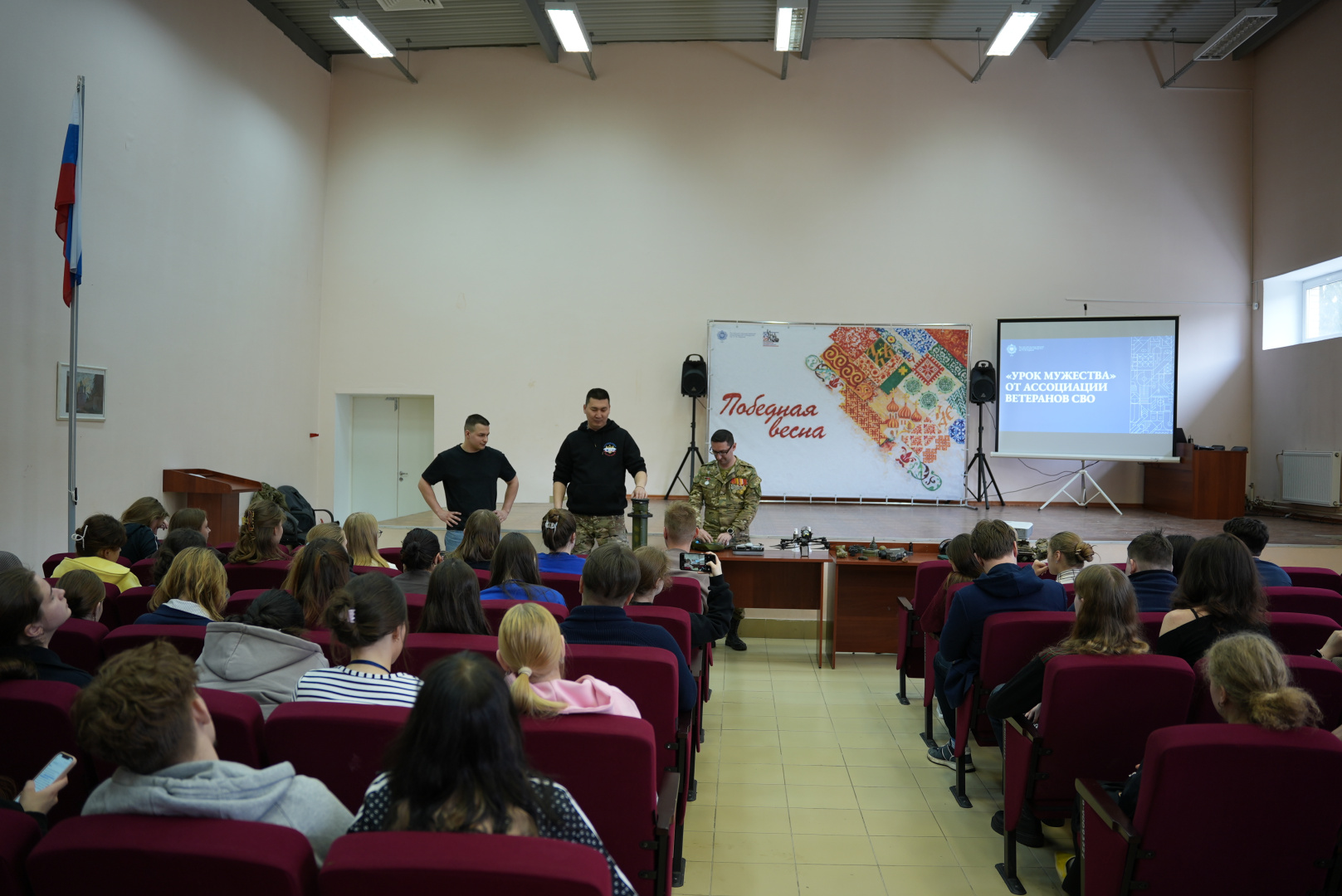 Важной частью программы стала встреча с жительницей блокадного Ленинграда, выпускницей Герценовского университета Ириной Зимневой. Она поделилась воспоминаниями о блокадном детстве и рассказала о своем профессиональном пути в педагогике. Еще одной значимой встречей стал «Урок мужества» с участием ветеранов специальной военной операции Вячеслава Егорова и Дмитрия Быкадорова. Они представили современные средства экипировки, беспилотные летательные аппараты и средства связи, используемые в зоне проведения специальной военной операции.